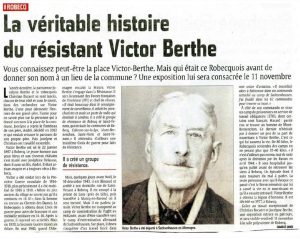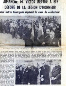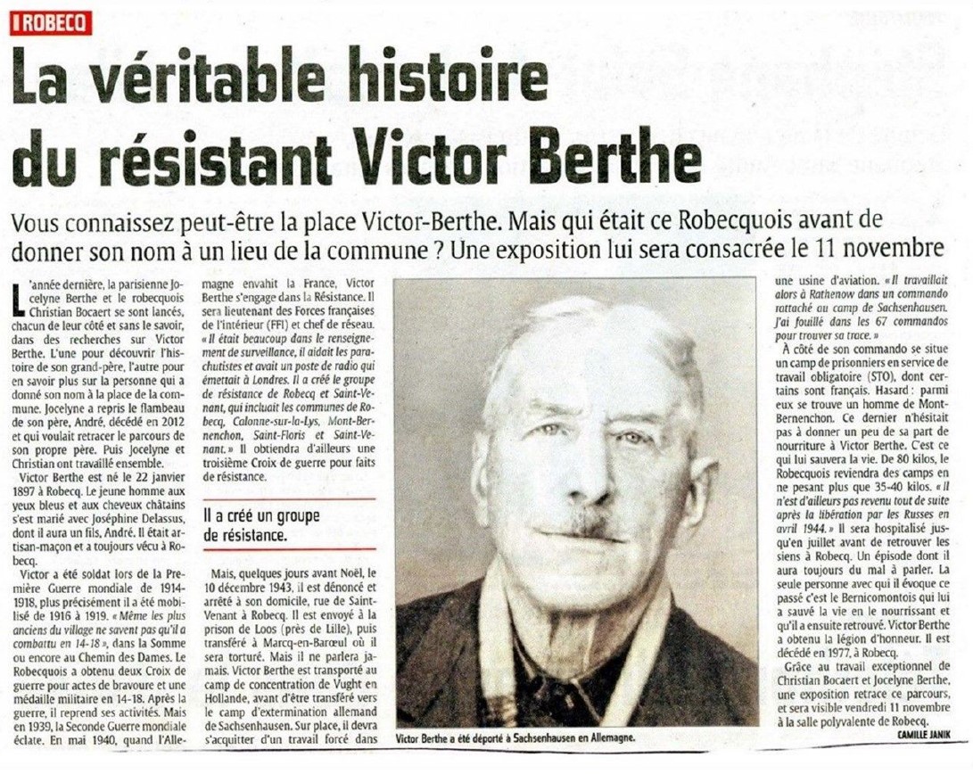 Histoire de Victor Berthe Cette page est dédiée à Victor Berthe, robecquois résistant et décoré de la Légion d’Honneur qui donna son nom à la place du village.